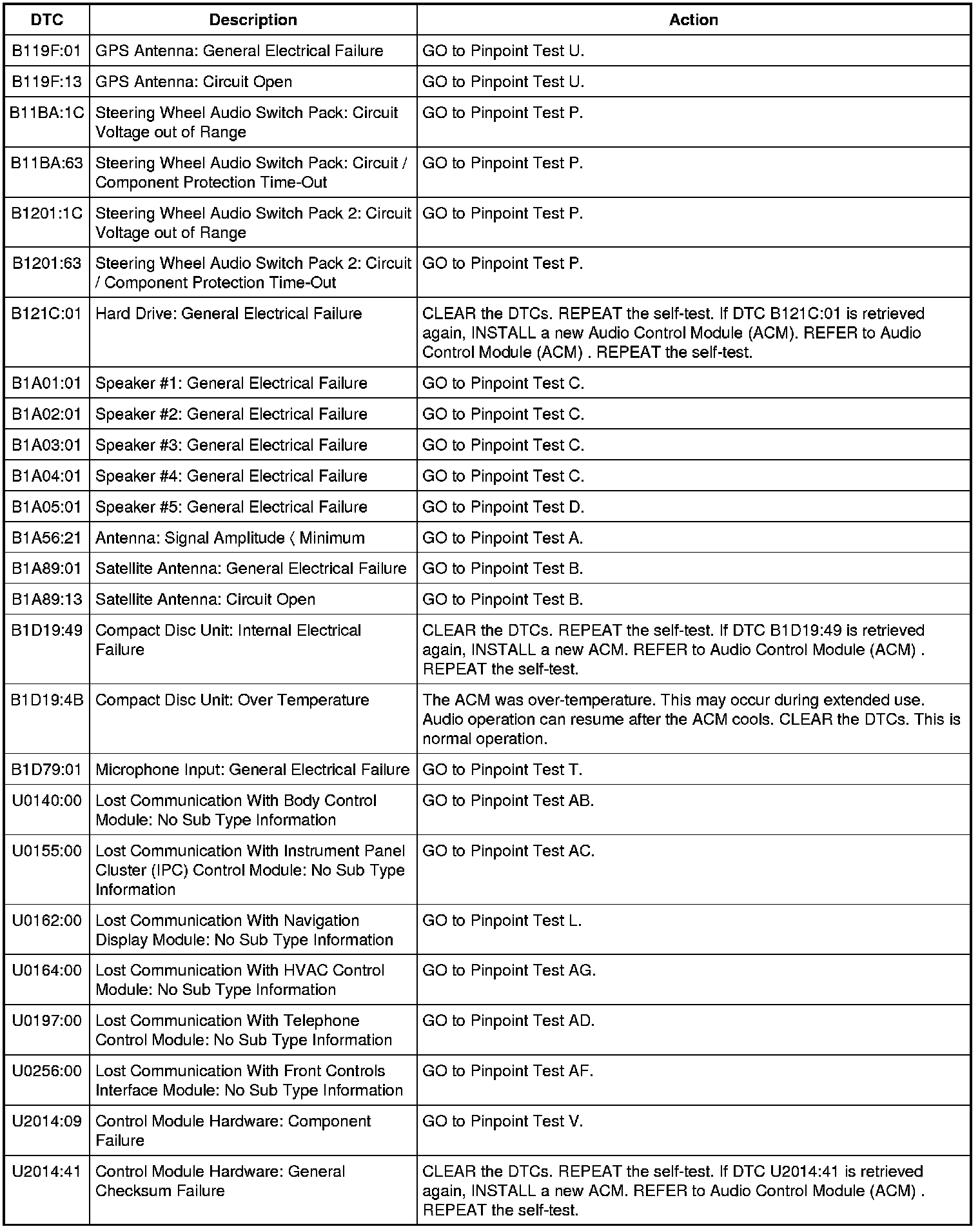 Audio Control Module (ACM) DTC Chart - Navigation