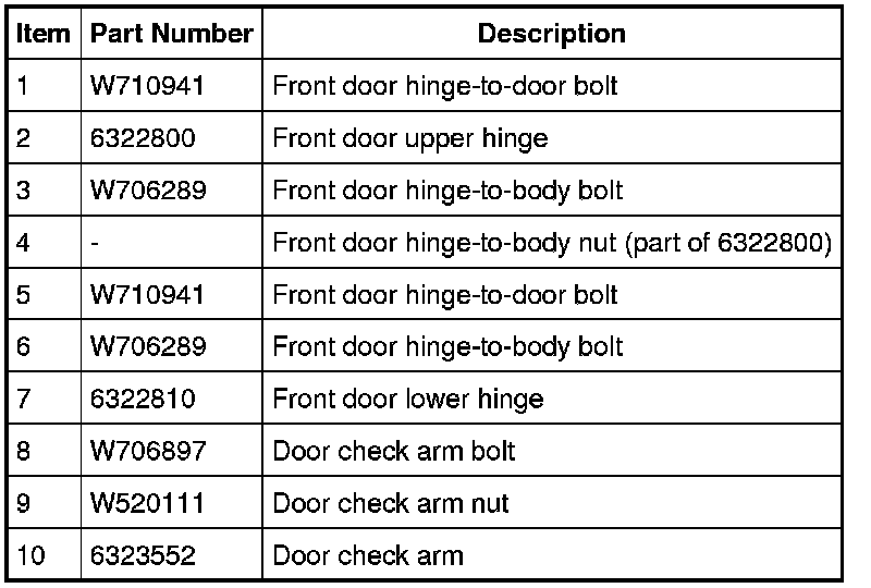 NOTE: Front door shown, rear door similar.