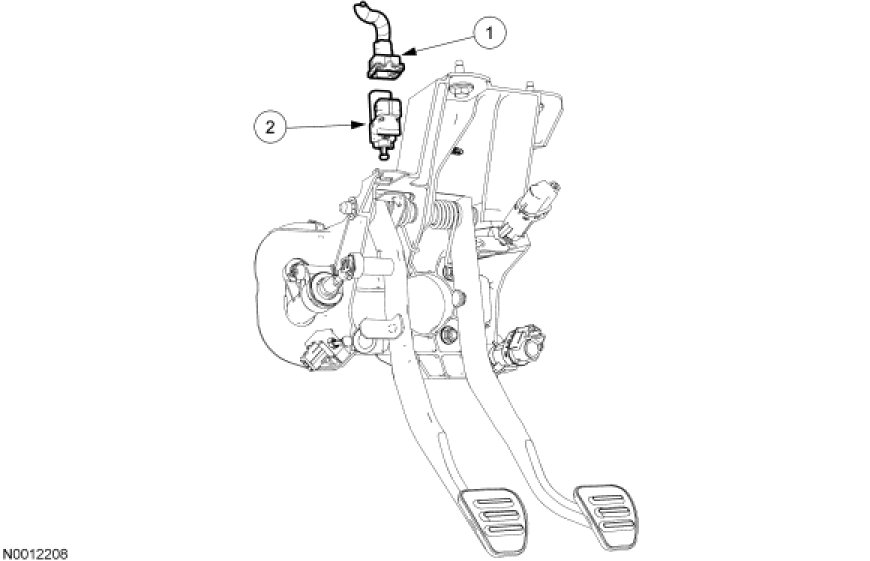 NOTE: When installing the cruise control deactivator switch, it is automatically self-adjusting to the proper position. Do not pull up or push down on the pedal during installation. Initial installation of the cruise control deactivator switch allows for one adjustment. If additional adjustments are necessary, install a new switch.
