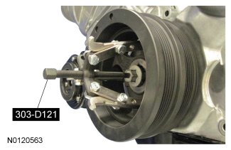 21. Using the 3 Jaw Puller and the crankshaft pulley bolt, remove the crankshaft pulley.