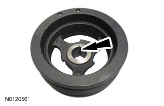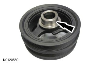 9. Lubricate the crankshaft pulley sealing surface with clean engine oil prior to installation.