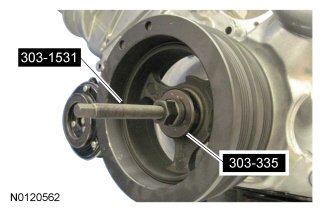 10. Using the Front Crank Seal and Damper Installer and the Front Cover Oil Seal Installer (plate only), install the crankshaft pulley.