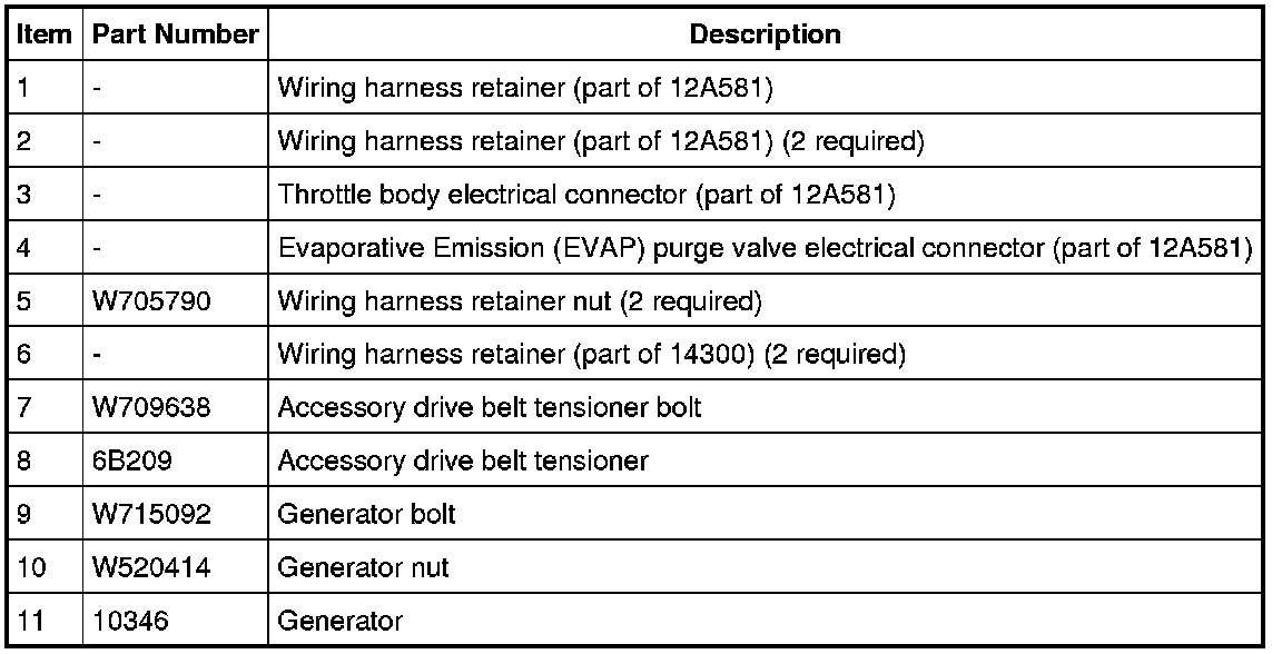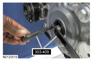 9. Remove the accessory drive and A/C compressor belts. For additional information, refer to Accessory Drive Service and Repair.