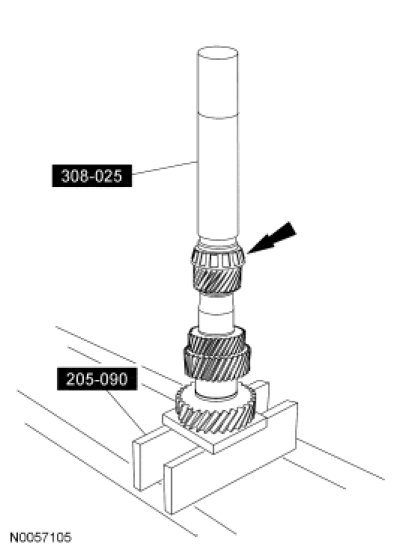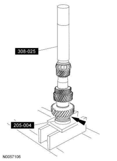 5. Using the Drive Pinion Bearing Cone Installer and the Bearing Tube Remover/Installer, install the countershaft front bearing.