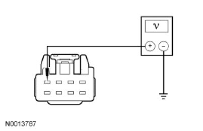 - Measure the voltage between lumbar control switch C361-4, circuit SBB32 (VT/RD), harness side and ground.