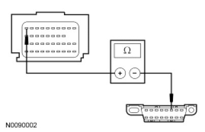 - Measure the resistance between the RCM C2041b-10, circuit VDB04 (WH/BU), harness side and the Data Link Connector (DLC) C251-6, circuit VDB04 (WH/BU), harness side.