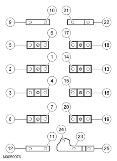 Install the bearing cap bolts and tighten in the sequence shown to 10 Nm (89 lb-in).