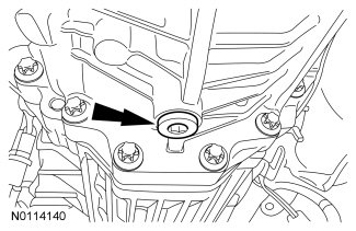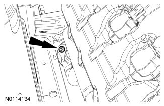 4. NOTICE: If the engine appearance cover is not removed it will be damaged when lowering transmission.