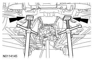1. With the vehicle in NEUTRAL, position it on a hoist. For additional information, refer to Jacking and Lifting Service and Repair.