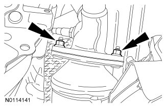 14. Remove and discard the 2 LH catalytic converter-to-exhaust manifold nuts.