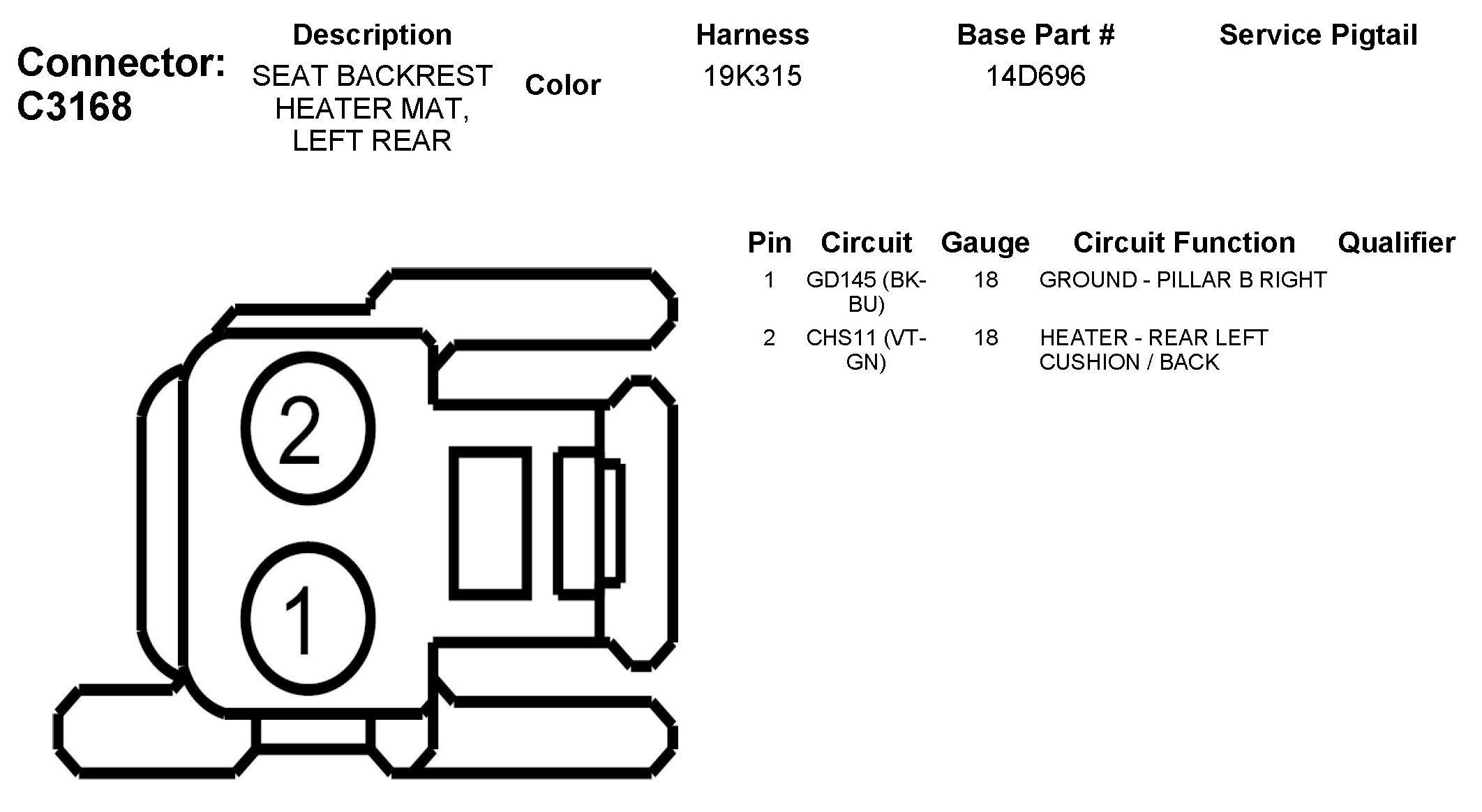 C3168 Seat Backrest Heater MAT, Left Rear