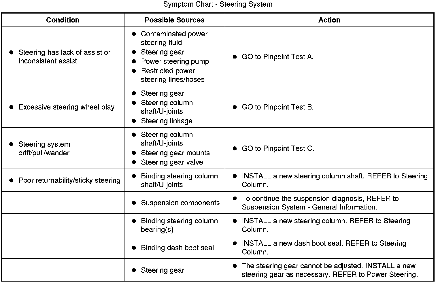 Symptom Chart - Steering System