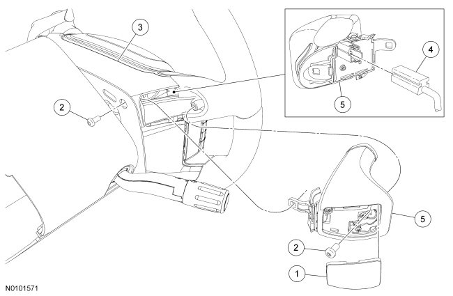 1. Remove the driver air bag module. For additional information, refer to Supplemental Restraint System Driver Air Bag Module.