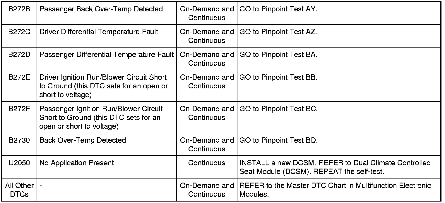 Dual Climate Controlled Seat Module (DCSM) DTC Chart