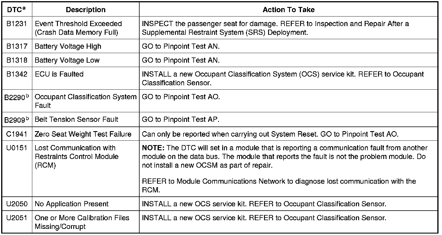 NOTE: The Occupant Classification System Module (OCSM) retrieves and reports DTCs using on-demand and CMDTCs DTCs and fault PIDs.