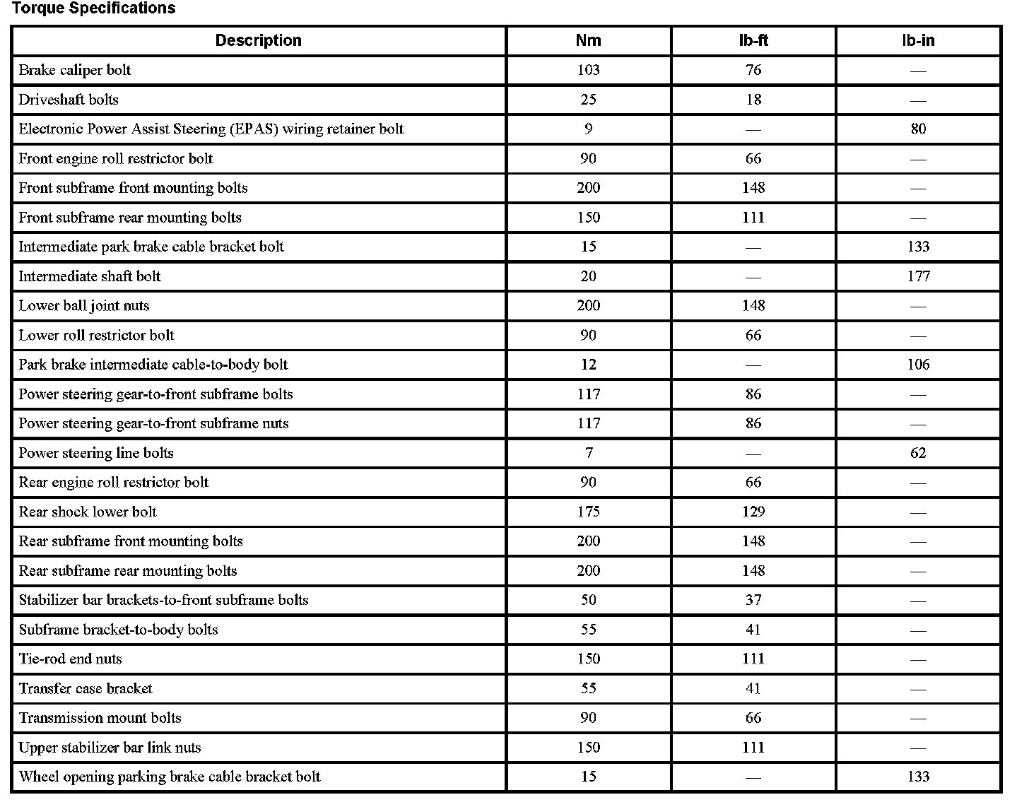 Torque Specifications: