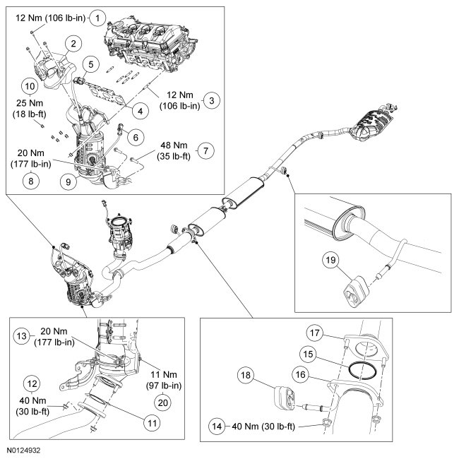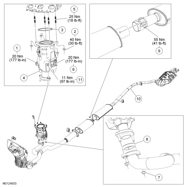 3.5L Gasoline Turbocharged Direct Injection (GTDI) LH and RH Catalytic Converters and Exhaust Flexible Pipes