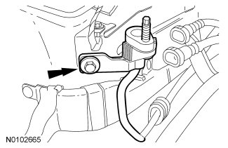 7. Install the engine mount bracket and lower bolt.
