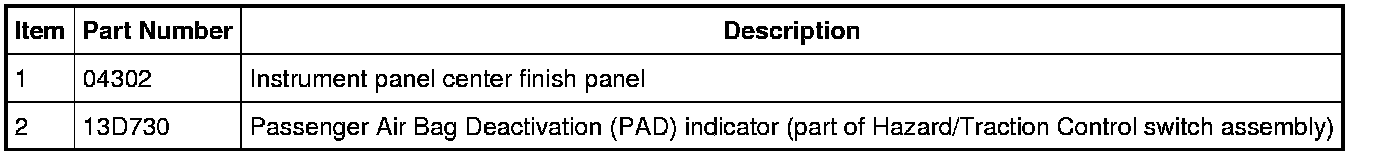 NOTE: The Passenger Air Bag Deactivation (PAD) indicator is part of the Hazard/Traction Control switch assembly.