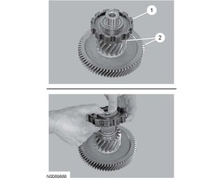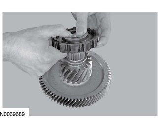 1. Install the park pawl wheel on the transfer shaft.