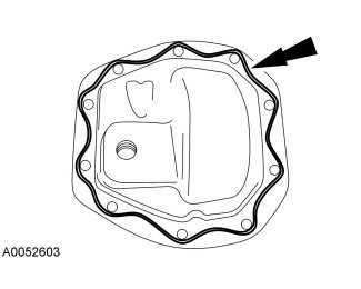 1. NOTE: Make sure the machined surfaces on the rear axle housing and the differential housing cover are clean and free of oil before installing the new silicone sealant. The inside of the rear axle must be covered when cleaning the machined surface to prevent contamination.