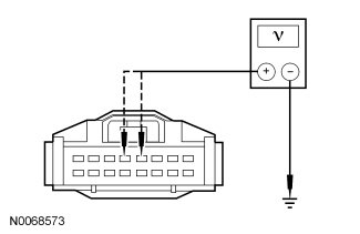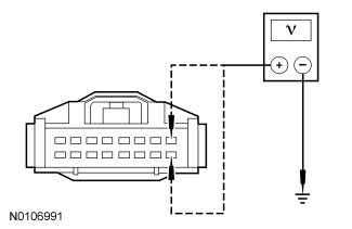 - Measure the voltage between 4X4 control module C281-8, circuit CCF21 (VT/WH), harness side and ground: and between 4X4 control module C281-16, circuit RCF21 (WH/VT), harness side and ground