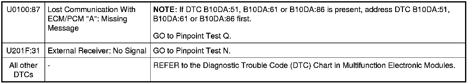 Remote Function Actuator (RFA) Module DTC Chart