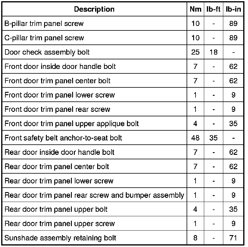 Interior Moulding / Trim: Specifications