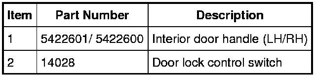 1. Remove the interior door handle. For additional information, refer to Interior Door Handle Interior Door Handle.