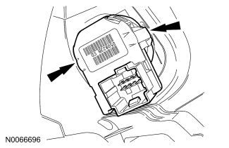 2. Depress the 2 locking tabs and remove the exterior mirror control switch.