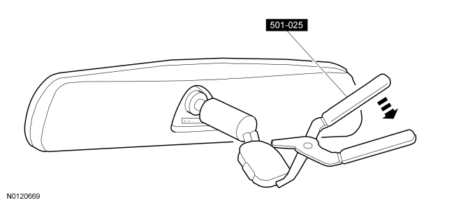 NOTICE: This procedure should be used only for an interior rear view mirror with the top access mount. Otherwise, damage to the windshield glass may occur.