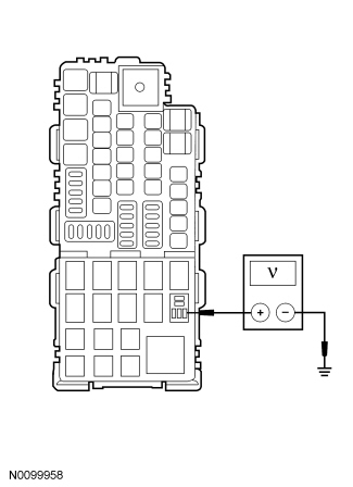 - Measure the voltage at the adaptive cruise (stoplamps) relay, pin 2, Battery Junction Box (BJB), face side and ground.