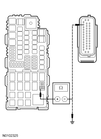 - Measure the resistance between adaptive cruise (stoplamps) relay, pin 1 BJB face side and ABS module C135-36, circuit CCA28 (GY/BN), harness side; and between the adaptive cruise (stoplamps) relay, pin 1, BJB face side and ground.