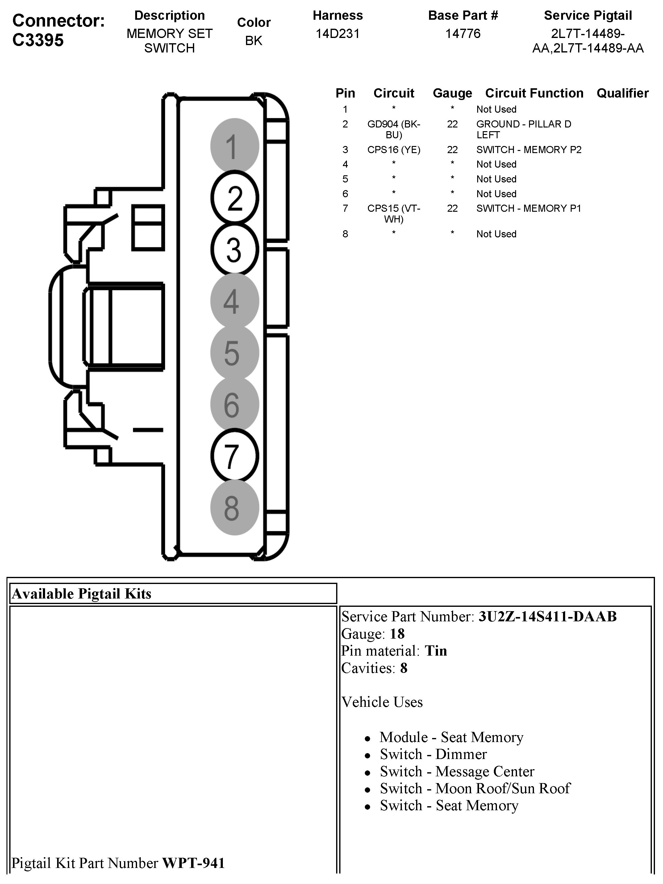 C3395 Memory Seat Switch