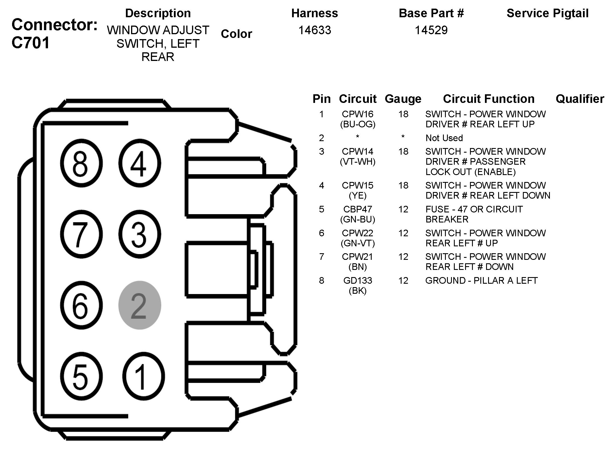 C701 Window Adjust Switch, Left Rear