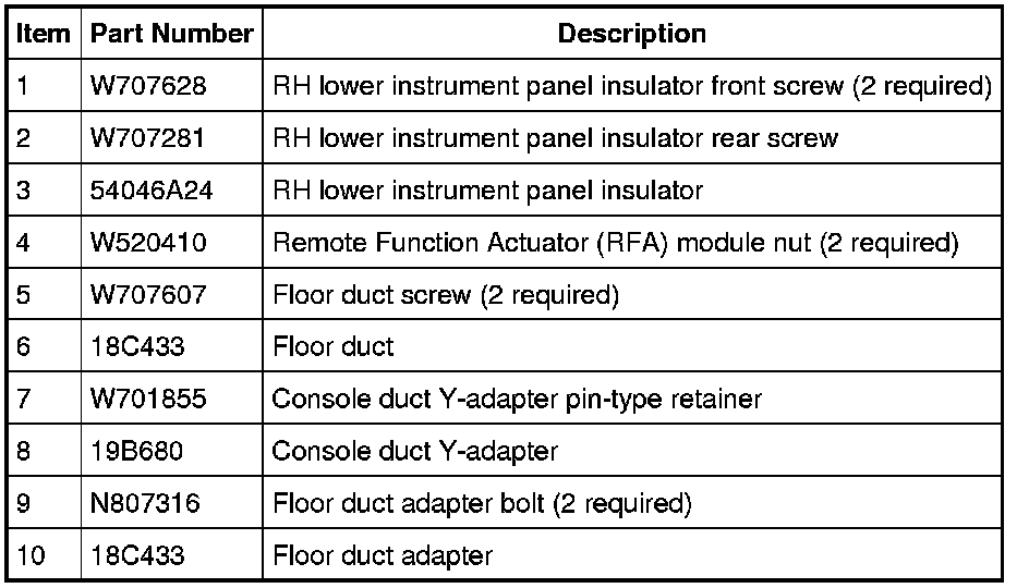 7. Remove the 2 floor duct adapter bolts and detach the floor duct adapter from the heater core and evaporator core housing.