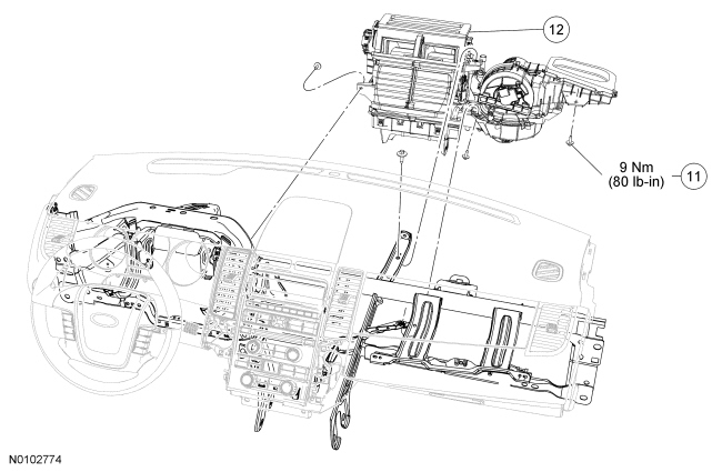 1. Remove the instrument panel. For additional information, refer to Instrument Panel and Console Instrument Panel.