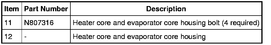 11. Remove the 4 heater core and evaporator core housing bolts.