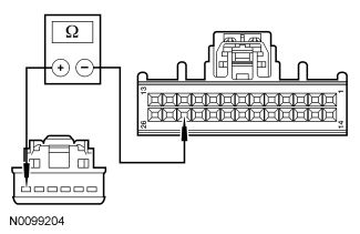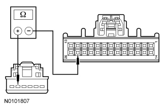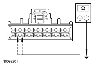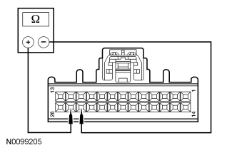 - Measure the resistance between HVAC module C294a-25, circuit CH207 (BU/GY), harness side and HVAC module C294a-24, circuit CH208 (GN/OG), harness side.