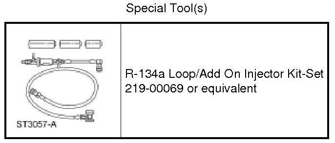 NOTE: If fluorescent leak detection dye is also to be added during A/C charging, the dye may be added to the dye/lubricant injector, from the R-134a Loop/Add On Injector Kit-Set, along with the PAG oil.