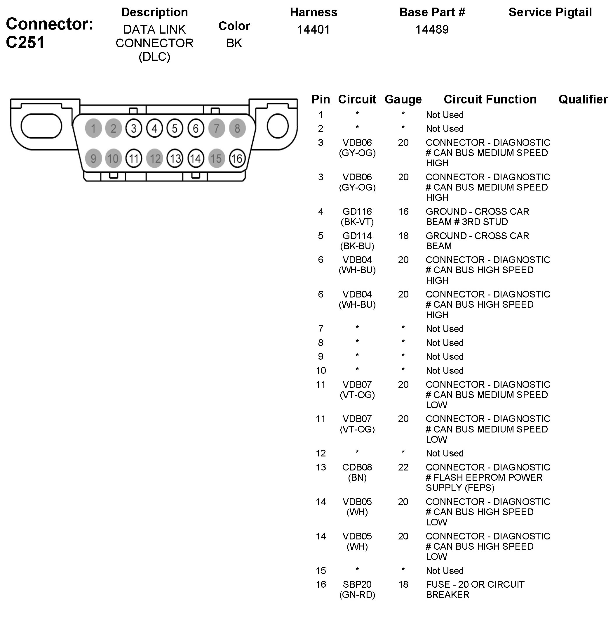 Data Link Connector: Diagrams