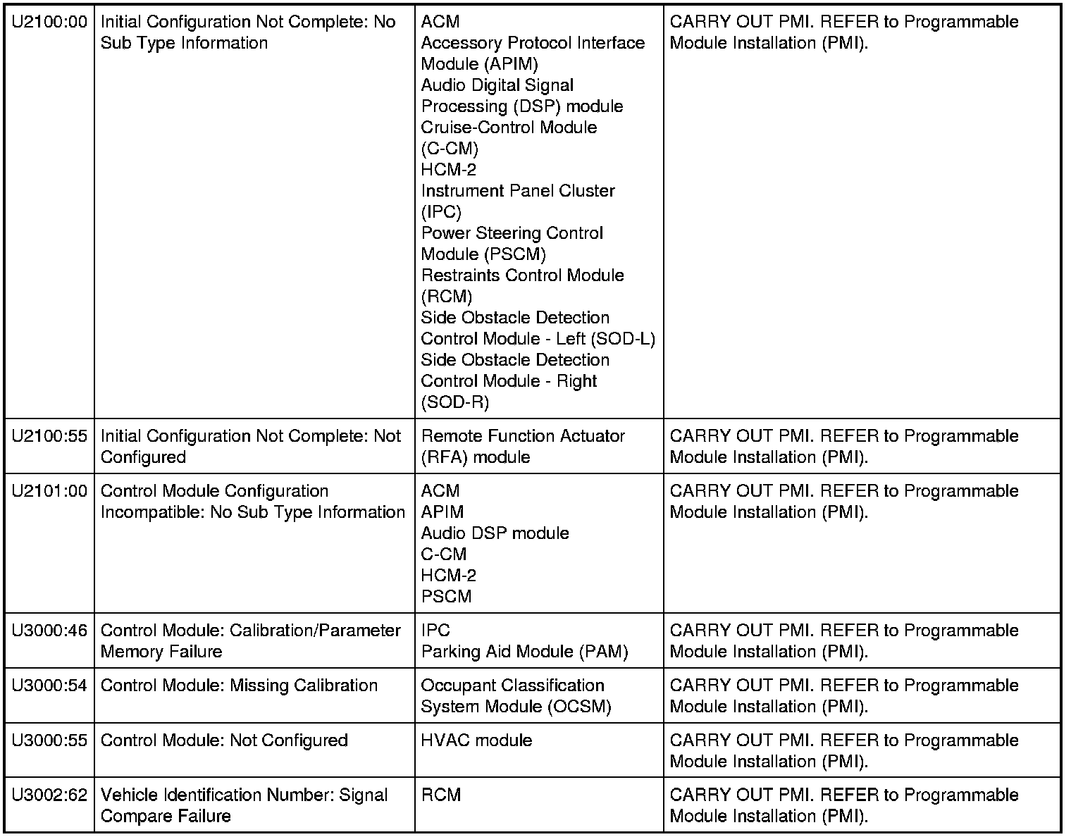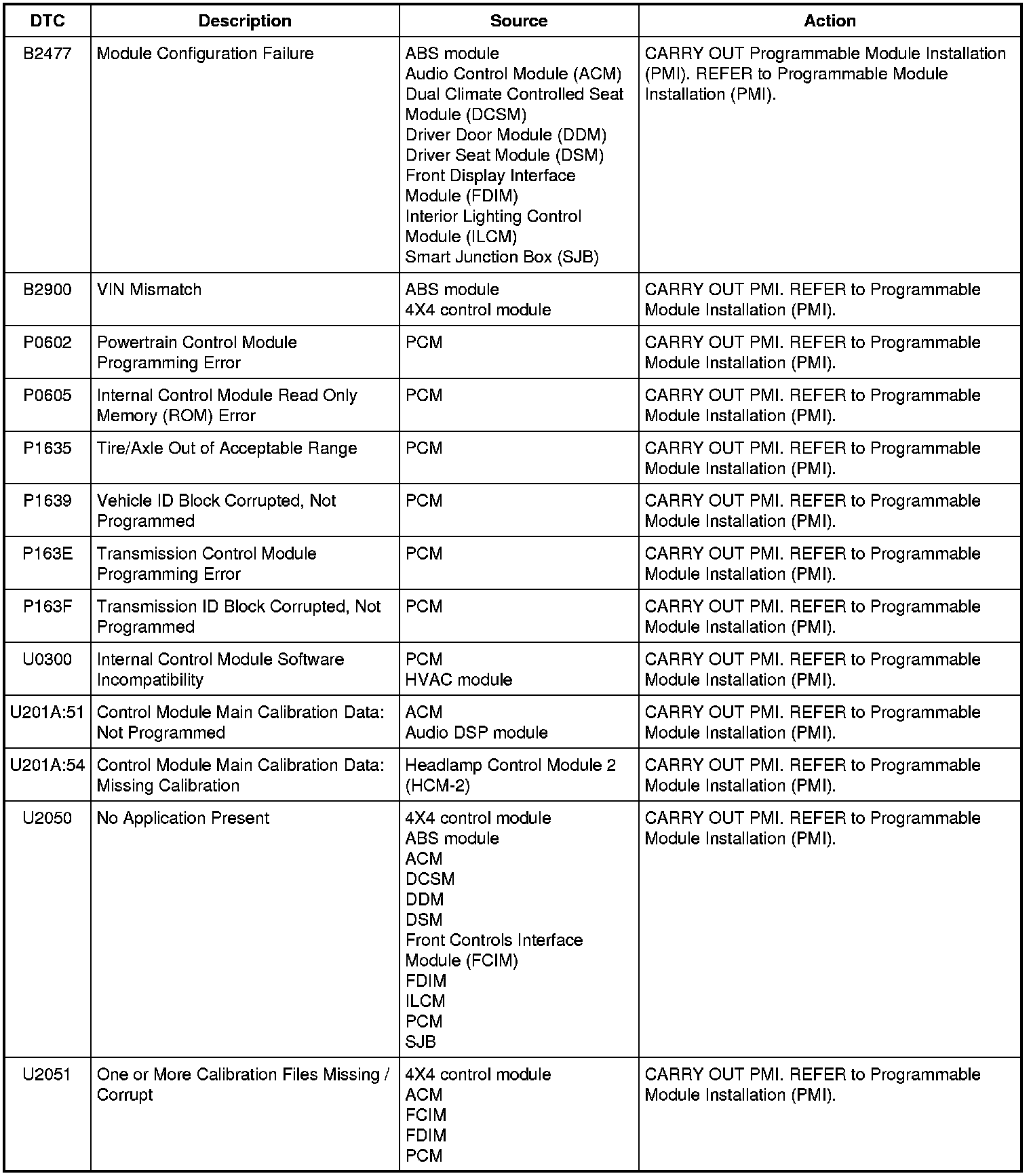 NOTE: Some modules on this vehicle utilize a 5-character DTC followed by a 2-character failure-type code. The failure-type code provides information about specific fault conditions such as opens, or shorts to ground. Continuous Memory DTCs have an additional 2-character DTC status code suffix to assist in determining DTC history.