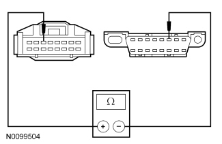 - Measure the resistance between the 4X4 control module C281-3, circuit VDB04 (WH/BU), harness side and the Data Link Connector (DLC) C251-6, circuit VDB04 (WH/BU), harness side.
