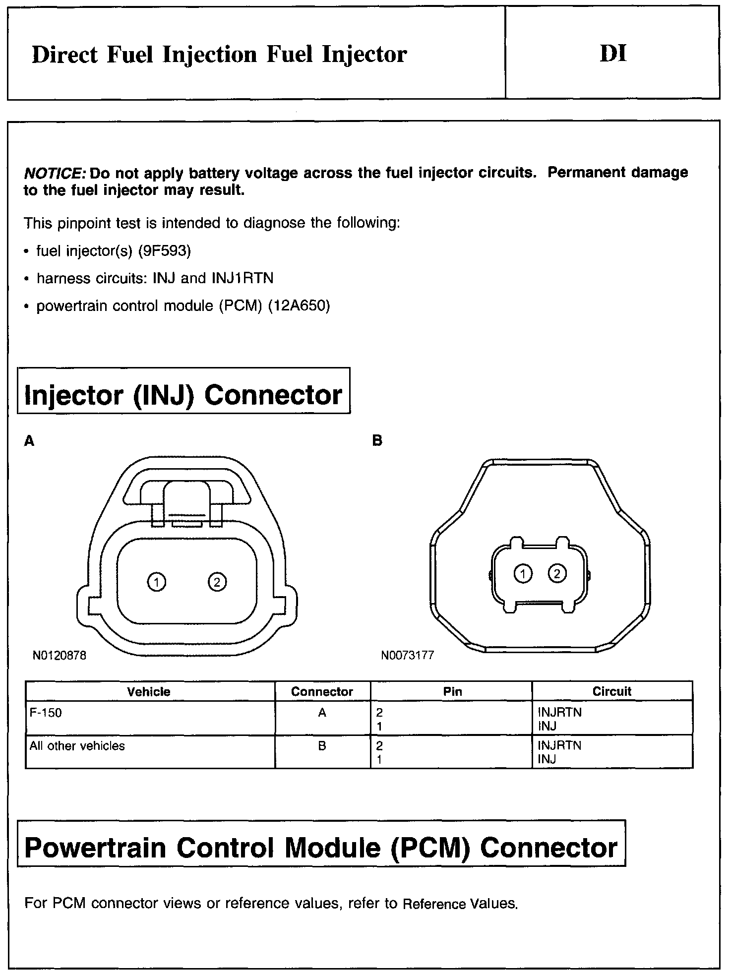 Notice, Injector (INJ) Connector And Powertrain Control Module (PCM) Connector: