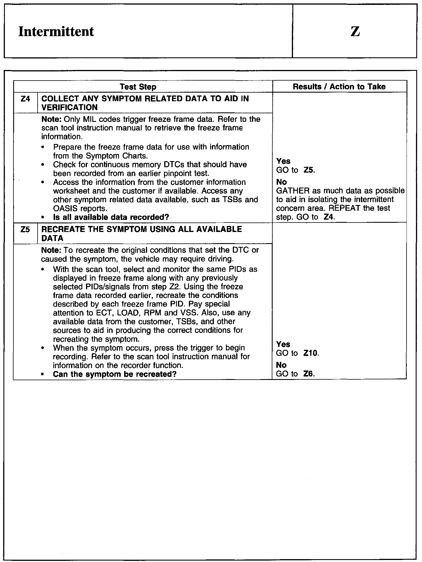 Test Z: Intermittent