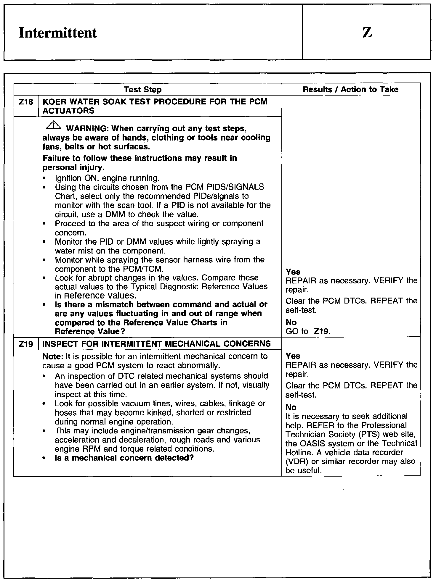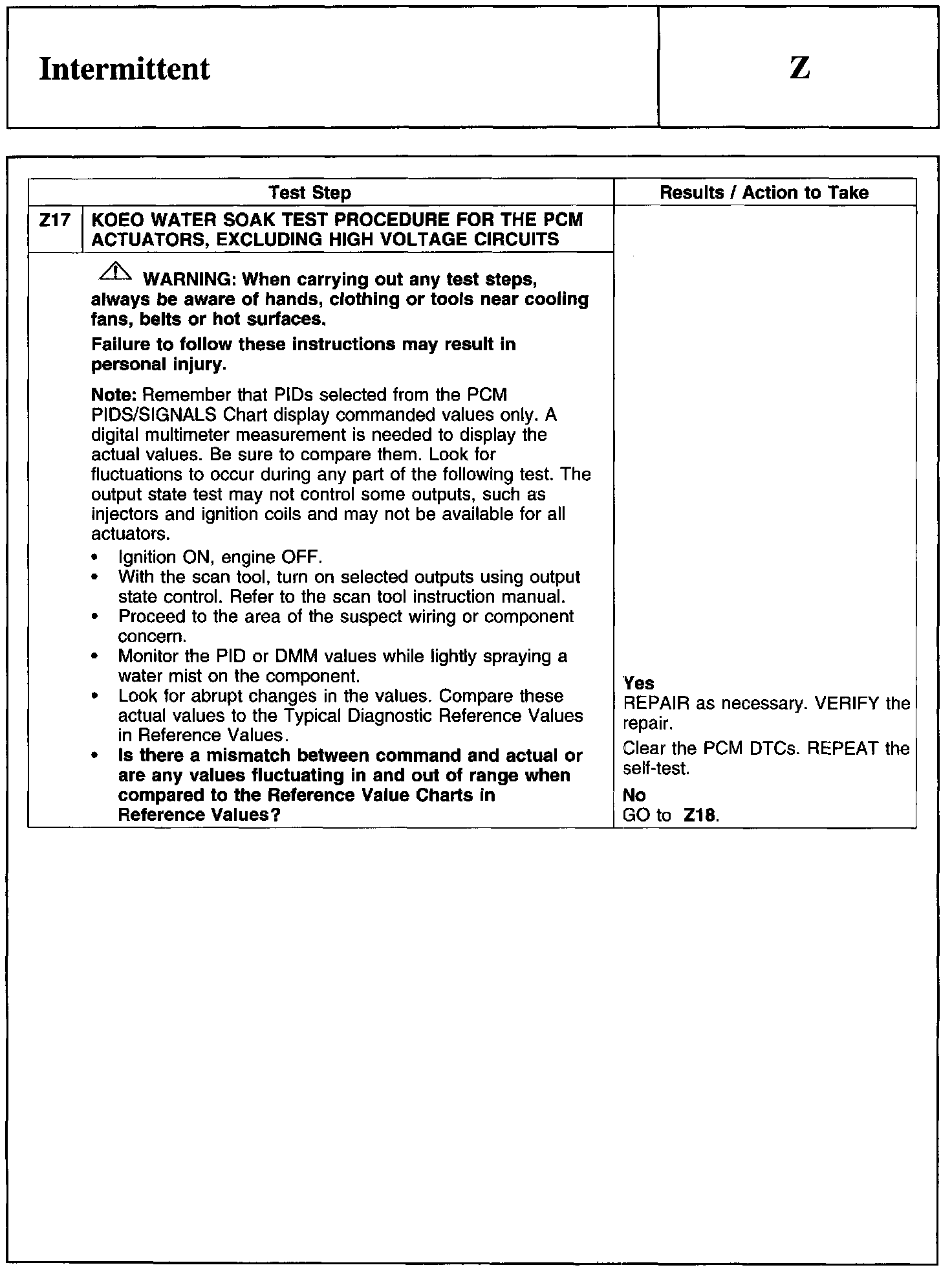 PINPOINT TEST Z: INTERMITTENT