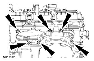 Install the RH exhaust manifold heat shield and the 3 bolts.