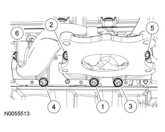 Using a new gasket, install the RH exhaust manifold and 6 new nuts. Tighten in 2 stages in the sequence shown: