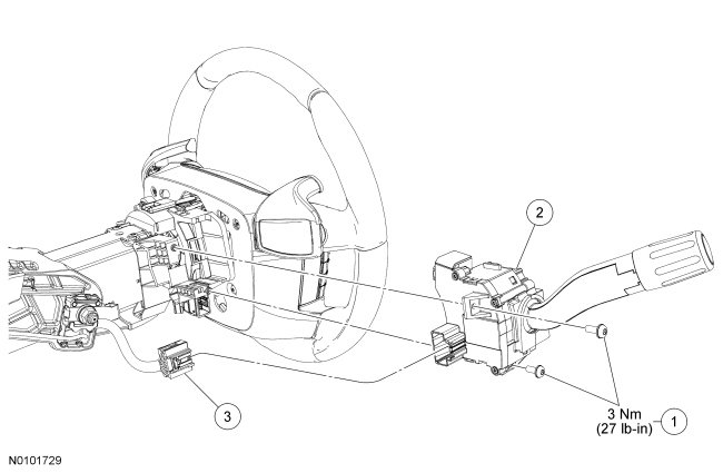 1. Remove the steering column shrouds. For additional information, refer to Steering Column Steering Column Shroud.