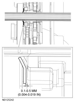 - If the clearance between the inboard push nut and the bushing exceeds 0.5 mm (0.019 in), install a 0.5 mm (0.019 in) feeler gauge or shim between the inboard push nut and the bushing and slide the inboard push nut tight against the feeler gauge or shim.